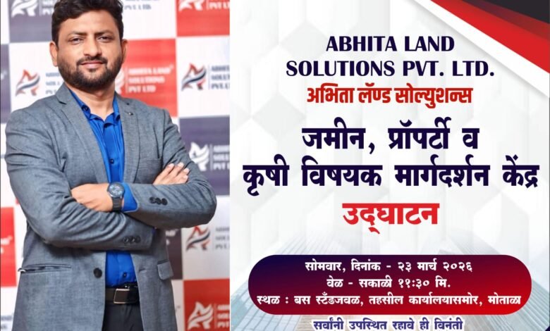 अभिता लॅण्ड सोल्युशन्स प्रा. लि. कंपनीच्या बुलढाणा येथील काजू स्टोअरचा शुभारंभ आणि मोताळा येथील जमीन, प्रॉपर्टी व कृषीविषयक मार्गदर्शन केंद्राचा उदघाटन समारंभ सोमवार २३ मार्च रोजी संपन्न होत आहे.