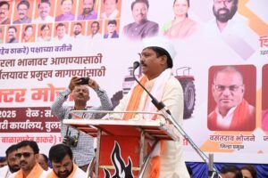 राज्यातील शेतकऱ्यांच्या न्याय्य मागण्यांकडे सरकारचे लक्ष वेधण्यासाठी बुलडाणा जिल्हा शिवसेना (उद्धव बाळासाहेब ठाकरे) पक्षाच्या वतीने आज २ मे रोजी काढण्यात आलेल्या ट्रॅक्टर मोर्चा ने जिल्हा मुख्यालय बुलढाणा अक्षरशः जाम होऊन गेले होते. निवडणूक पूर्व काळात दिलेला आश्वासनांचा सरकारला विसर पडल्याने शेतकऱ्यांमध्ये असंतोष आहे.शेतकऱ्यांच्या कर्जमाफीसाठी शिवसेनेने ( उबाठा )या प्रचंड धडक मोर्चातून महायुती सरकारला जाब विचारला. शेकडो ट्रॅक्टर आणि हजारो शेतकरी रस्त्यावर उतरले होते. यावेळी जिल्हा संपर्कप्रमुख प्राध्यापक नरेंद्र खेडेकर यांनी घणाघाती हल्ला चढवत झोपेच सोंग घेतलेल्या महायुती सरकार ला जागा करण्यासाठी हा ट्रॅक्टर मोर्चा असल्याचे सांगितले. “देता की जाता की खाता लाथा” अशाप्रकारे या आंदोलनाची भविष्यात व्याप्ती वाढवावी लागणार असल्याचे सांगून हा वनवा शेतकऱ्यांच्या कर्जमाफीसाठी राज्यभरात पेटेल आणि शेतकऱ्यांची कर्जमुक्ती होईपर्यंत आंदोलन सुरूच राहील असेही प्राध्यापक नरेंद्र खेडेकर म्हणाले.