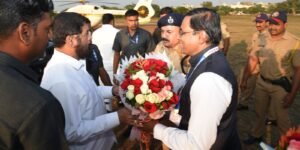 बुलडाणा, दि. १३ (जिमाका): मुख्यमंत्री एकनाथ शिंदे यांचे आज छत्रपती संभाजीनगर येथून चिखली (जि. बुलडाणा) येथील हेलिपँडवर आगमन झाले. जिल्हा क्रीडा संकुलात आयोजित ‘शिवसंकल्प अभियान – कार्यकर्ता मेळावा’साठी ते आले असून, खासदार प्रतापराव जाधव, आमदार संजय रायमुलकर, आमदार श्रीमती श्वेताताई महाले यांनी त्यांचे स्वागत केले.