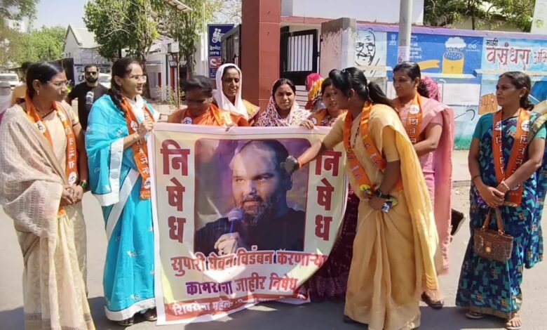 शिवसेना महीला आघाडीने जिल्हाकचेरी समोर केले कुणाल कामराला जोडे मारो आंदोलन…