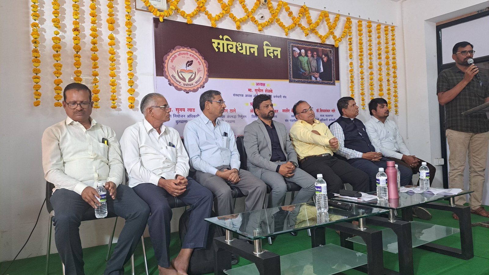 संघटनेच्या वतीने २६ नोव्हेंबर रोजी संविधान दिन साजरा करण्यात आला. यावेळी अध्यक्षस्थानावरुन ते बोलत होते. मंचावर जिल्हा नियोजन अधिकारी सुनय लाड, अंधश्रद्धा निर्मूलन समितीचे जिल्हा समन्वयक प्रमोद टाले, ऍड. सुभाष विणकर, शाहीर के. ओ. बावस्कर, संघटनेचे राज्य सल्लागार डॉ. शिवशंकर गोरे यांची प्रमुख उपस्थिती होती. पुढे बोलतांना सुनील शेळके म्हणाले, संविधानाने भारतीय नागरिकांना सन्मानाने जगण्याचा अधिकार दिला. प्रत्येकाने संविधानाचा आदर केला पाहिजे. समाजाच्या कल्याणासाठी झटणाऱ्या महामानवांना अभिवादन करुन आज ओबीसी अधिकारी कर्मचारी संघाच्यावतीने संविधान दिन साजरा करण्यात आला. संविधान जनजागृतीसाठी संघटना कटिबद्ध आहे.